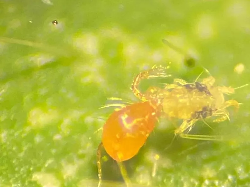 Phytoseiulus persimilis is a predatory mite belonging to the Phytoseiidae family. It is a predatory mite of red spider mite. This predator mite eats all the stages of the red spider mite, although it prefers young spiders. The predatory mites pierce the prey and consume the contents.